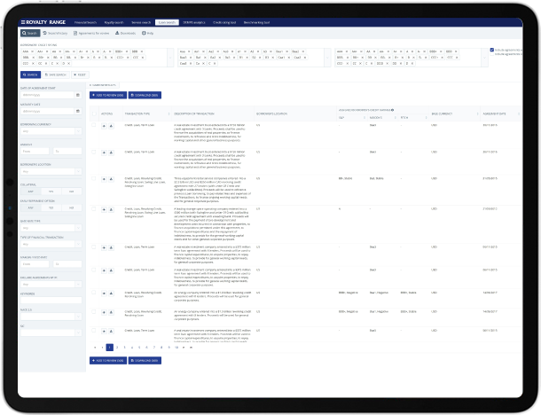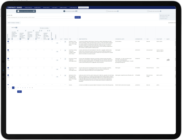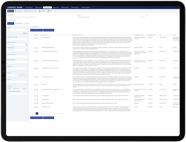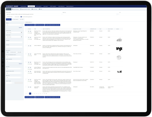 Get premium-quality data on third-party license agreements with our royalty rates database.