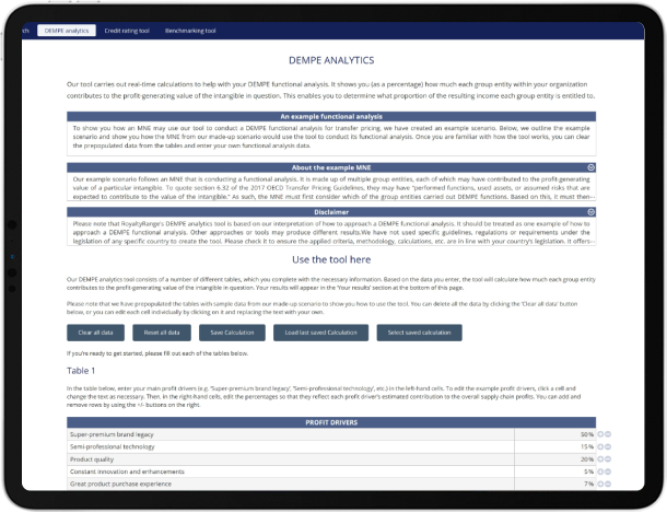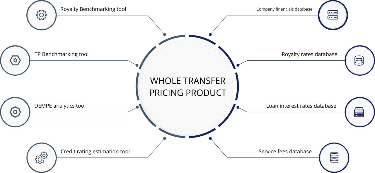 With our range of databases, covering private company financials, royalty rates, service fees and loan interest rates, and tools for benchmarking, DEMPE analysis and estimating credit ratings, you can access everything you need for accurate transfer pricing, all in one place.